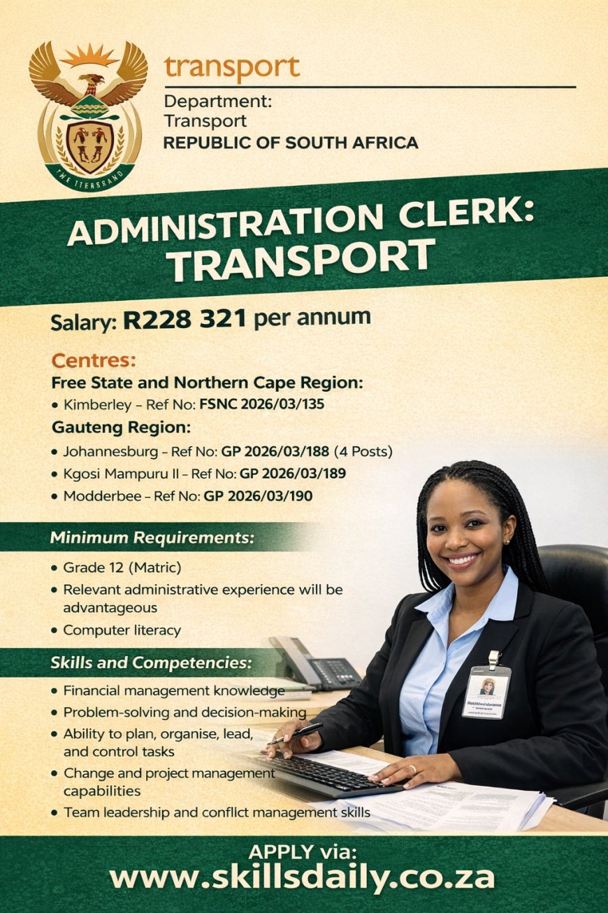 ADMINISTRATION CLERK (X7 Posts): TRANSPORT