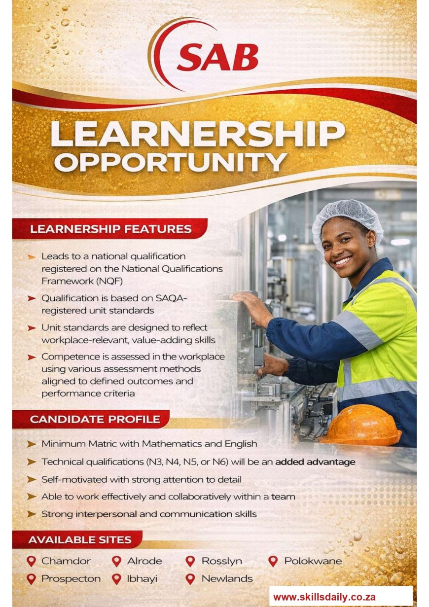SAB is an equal opportunity employer, and all appointments will be made in accordance with the company’s Employment Equity Plan and operational requirements. While minimum requirements are listed, management reserves the right to apply additional relevant criteria during the shortlisting process.