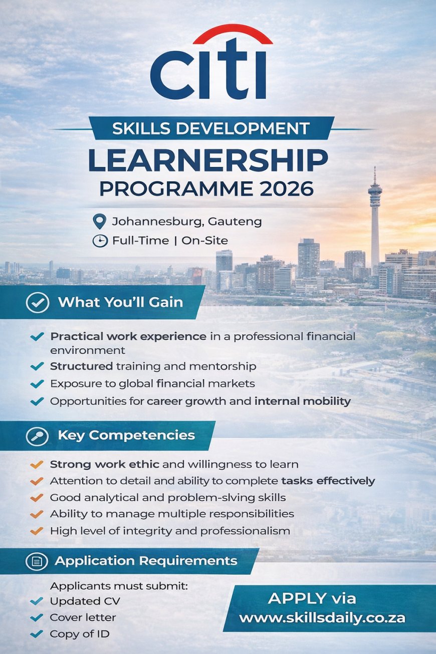 This 12-month Learnership Programme is designed for recent graduates looking to gain hands-on experience within the Investor Services – Custody division. It offers practical exposure, structured training, and the opportunity to build a long-term career in the financial services industry.
